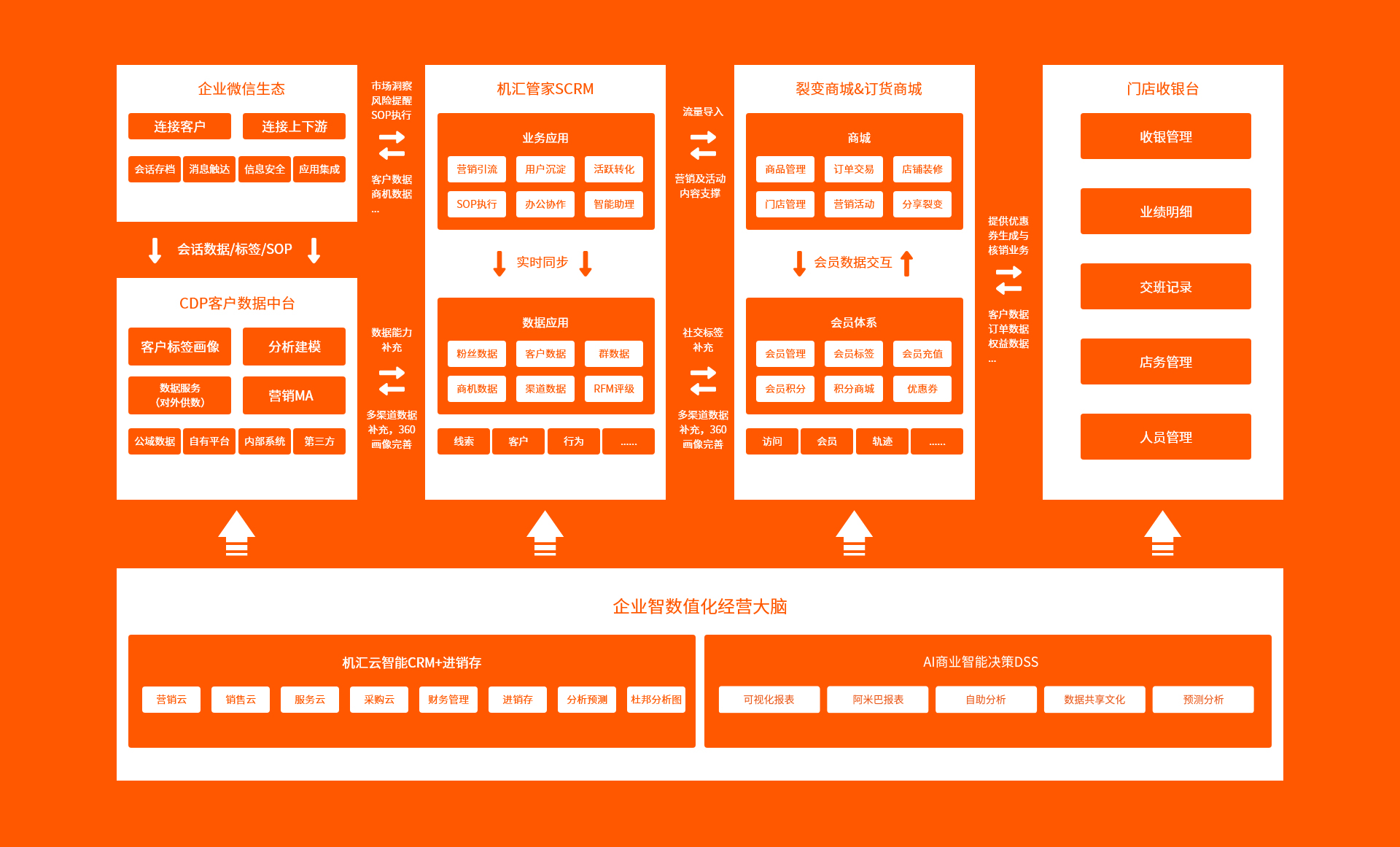 打通交易平台和触点,从POS、二维码到电商平台、线下门店